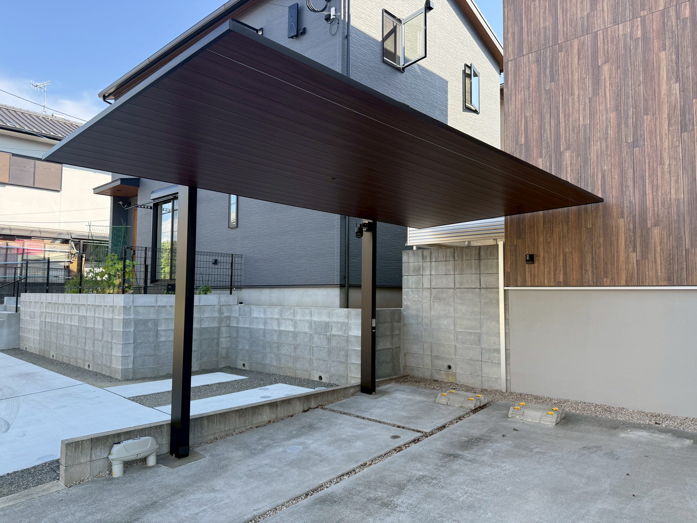 福岡県糸島市の個人宅でLIXIL「カーポートSC」新設工事を実施。グッドデザイン賞受賞のシンプルで美しいデザインと、アルミ屋根による車内温度 …